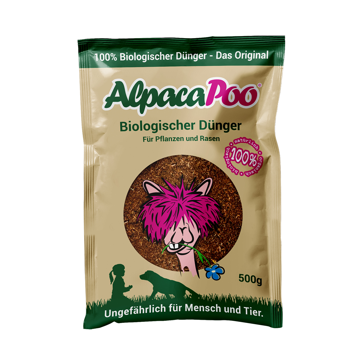 Der AlpacaPoo Alpaka-Dünger im 500g Beutel versorgt Ihre Pflanzen mit natürlichen Nährstoffen. Ideal für kleine Gärten, Balkonpflanzen und Zimmerpflanzen.